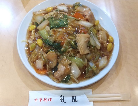 麺は、柔らかい麺か揚げ麺を選べます。餡は甘め。油っこさはありません。エビはいまいちでイカはおいしくない。イカに餡の色が染みこんでいて、チンゲン菜はくすんだ緑色、味も作り置きのような味で、口に合いませんでした。。